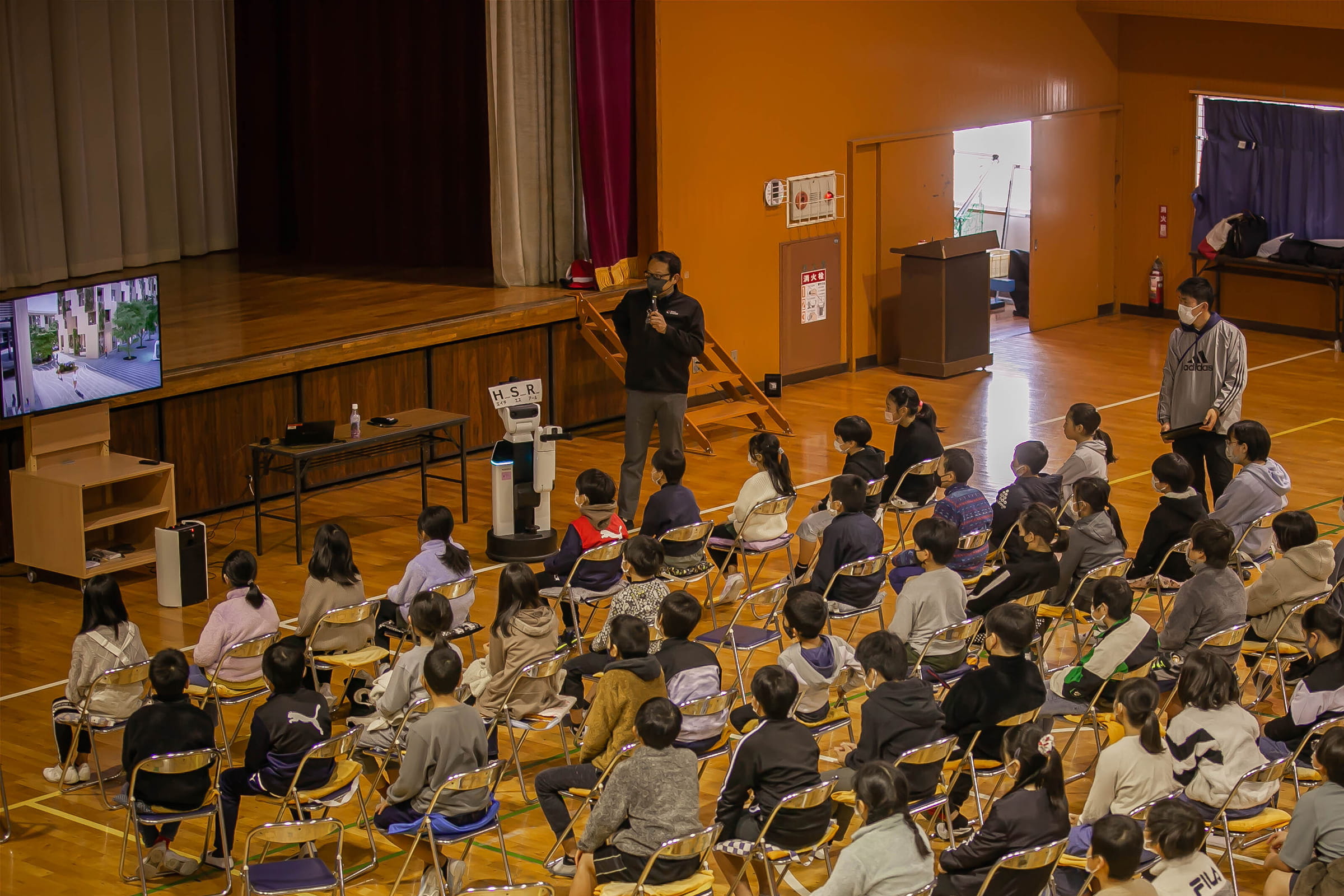 Toyota School is a visiting lecture program. Recently, we visited an elementary school in Susono City, Shizuoka Prefecture, where Woven City is currently being built, to teach students about Toyota’s automobile manufacturing and development as well as Woven City